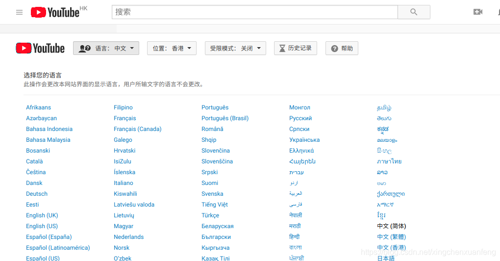 但是某些网址上没有设置页面,或者设置页面里找不到设置语言的选项,这是可以试试在链接最后面加上hl后缀,Zh-cn表示中文,en表示英文 …… 就可以切换语言了。